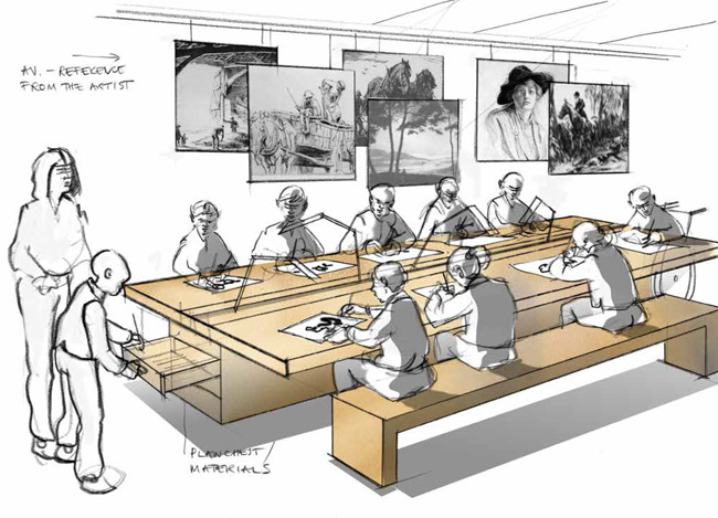 We hope for a natural water feature and bird and wildlife habitat so that outdoor workshops and painting stations will provide artists with the opportunity to observe and create as the Soper family did. – Yes, partly, ‘In a haven of peace and tranquility’ featuring areas for birds and wildlife habitat, outdoor activities are sometimes included in gallery projects as in the current park trail, part of the national 2023 Wild Escape project.